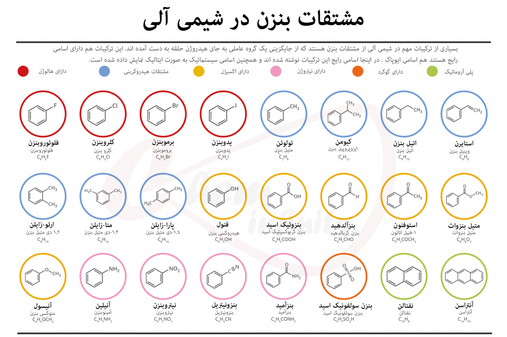 به عنوان نکته پایانی باید اشاره کنیم که بنزن جزو مواد سرطان زا می باشد ولی این بدین معنا نیست که همه ی ترکیباتی که داری حلقه ی بنزنی در ساختار خود هستند سرطان زا اند .