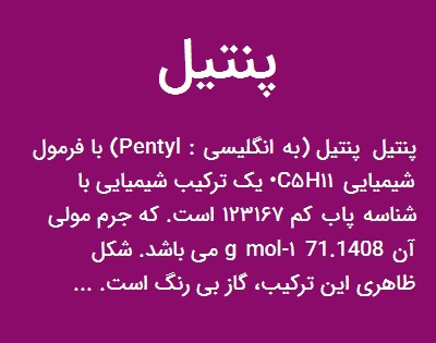 در ترکیبات آلی، پنتیل میتواند به شکلهای مختلف (نرمال، ایزو، سیکلو و...) ظاهر شود و در ساختارهای دارویی، پلیمرها و ترکیبات معطر نقش داشته باشد.