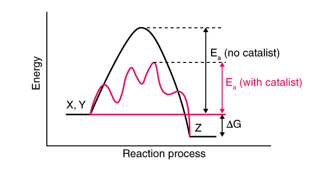 این با ارائه یک مسیر جایگزین برای واکنش عمل می کند و انرژی فعال سازی مورد نیاز برای انجام واکنش را کاهش می دهد.