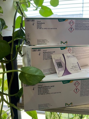 نام ماده : Hydrochloric acid for 1000 ml, c(HCl) = 0.5 mol/l (0.5 N) Titrisol®