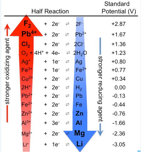 این یک رتبه بندی از مواد را بر اساس پتانسیل الکترودی استاندارد آنها ارائه می دهد، که نشان دهنده سهولت در بدست آوردن یا از دست دادن الکترون در واکنش های الکتروشیمیایی است.
